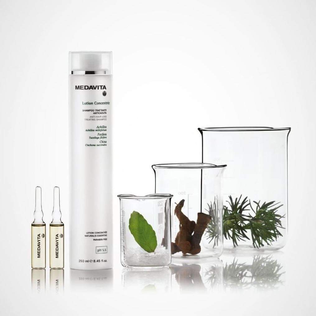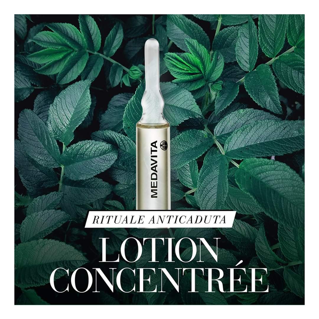 Ампули за косопад от серията Lotion Concentree на Medavita са високоефективна терапия със 100% растителен произход, специално създадена за моментално овладяване на активен, силно изразен косопад. Независимо дали се дължи на хормонален дисбаланс, стрес, боледуване или наследственост, тази формула дава сигурни резултати.